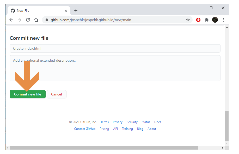 Commit new file 버튼 누름