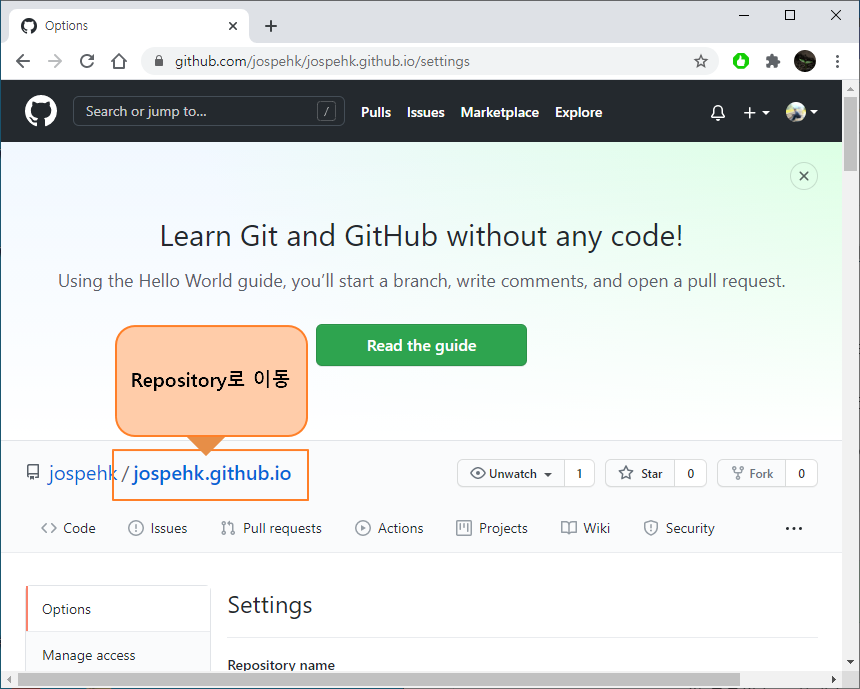 Repository 로 이동하는 방법