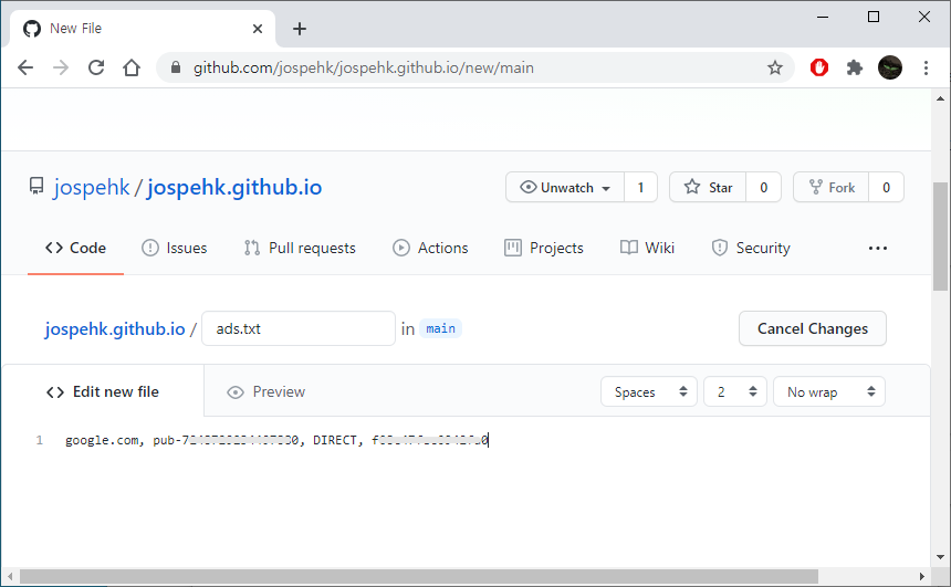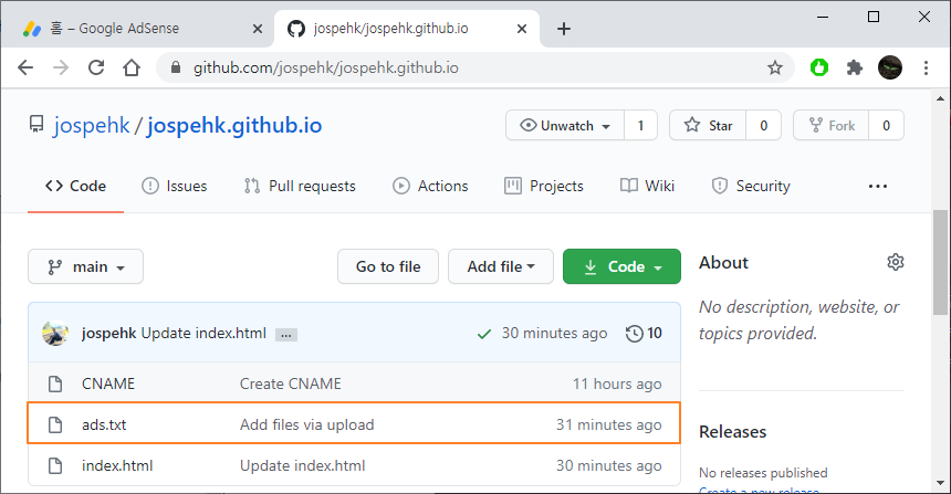 이상으로 개인 도메인을 사용하는 경우 GitHub를 활용해서 애드센스의 ads.txt 파일 문제를 해결하기 위한 과정이었습니다.
