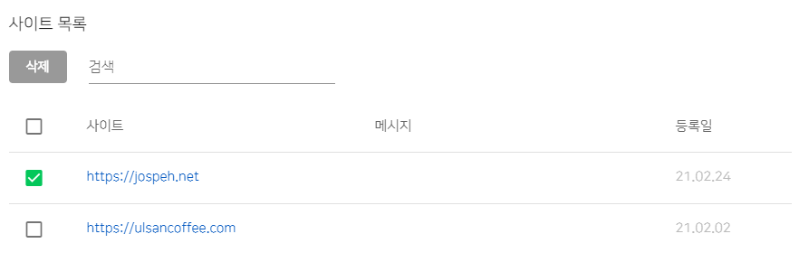 - 결과 : 인증되었다가 개인 도메인을 티스토리로 연결시키고 하루 지나니 인증이 풀려버림