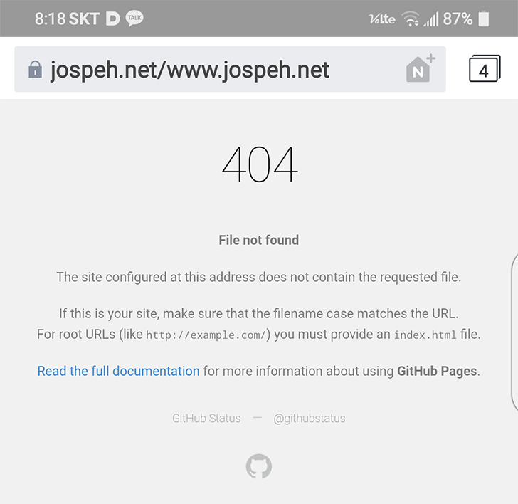2. GitHub에서 티스토리의 https://www.jospeh.net으로 Reditection 시킴