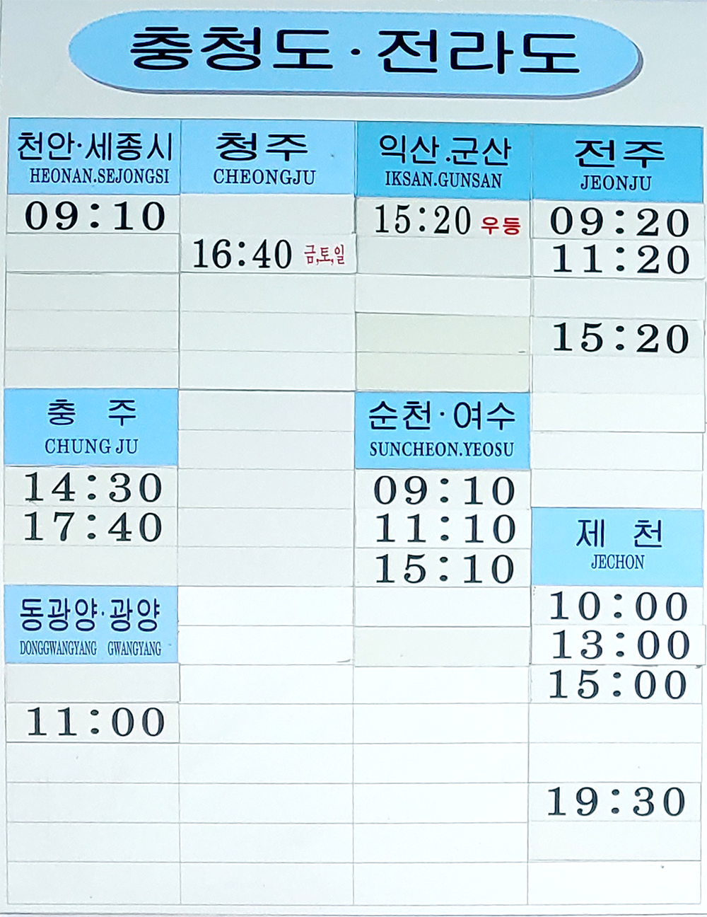 천안 / 세종시 / 충추 / 청주 / 익산 / 군산 / 순천 / 여수 / 전주 / 제천 / 동광양 / 광양