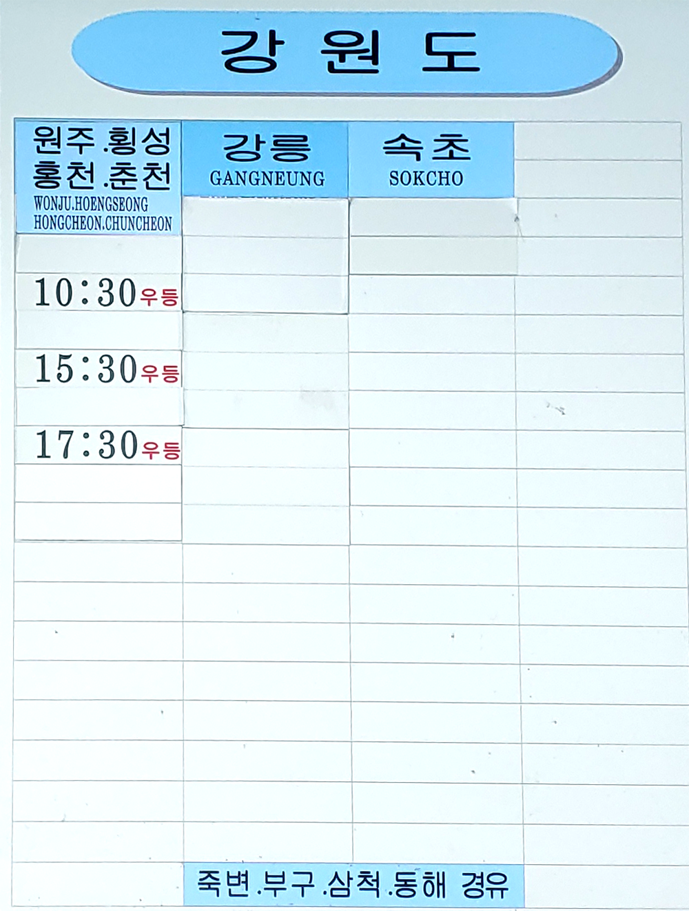 원주 / 횡성 / 홍천 / 춘천 / 죽변 / 부구 / 삼척 / 동해