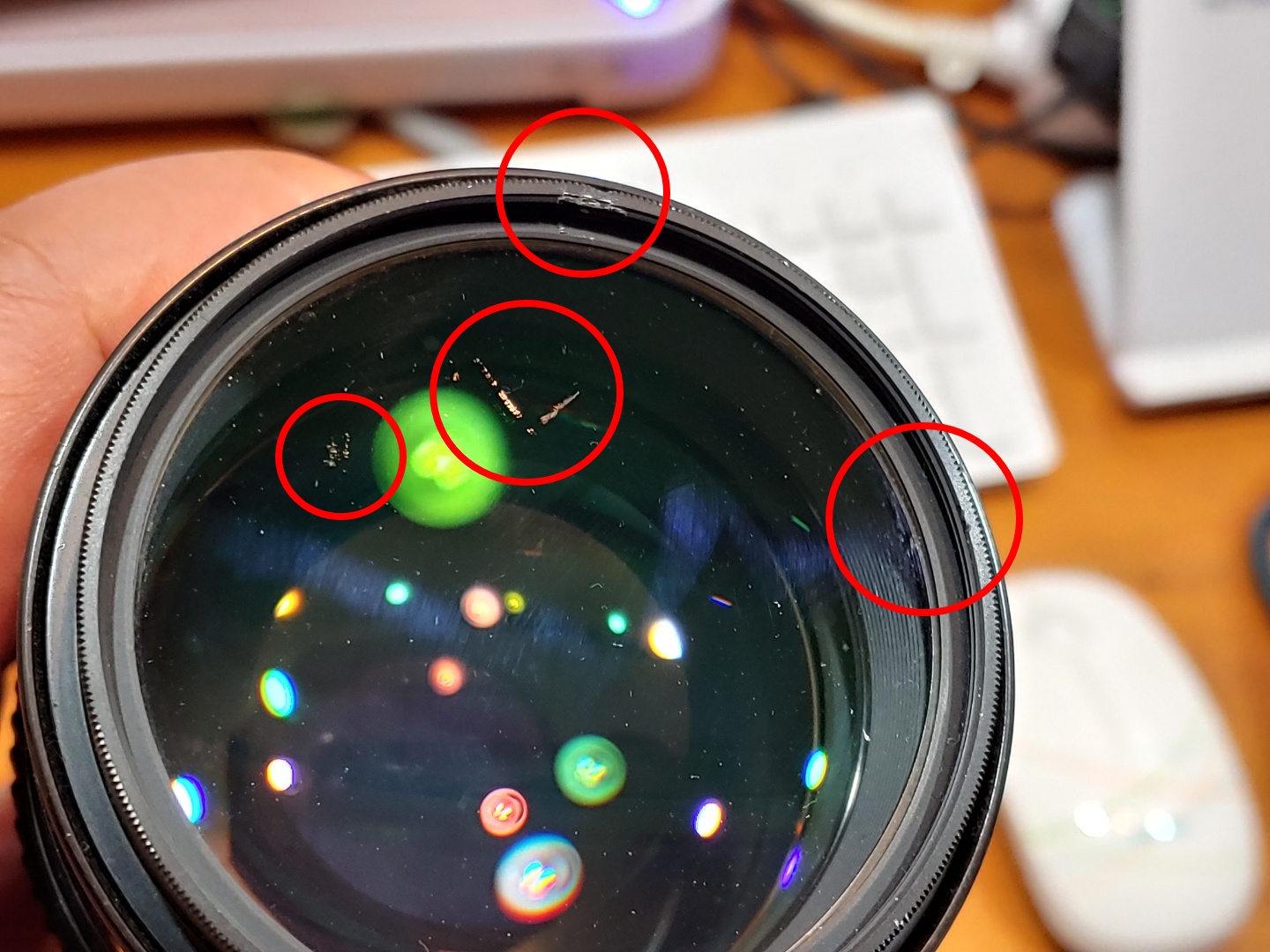 UV필터 표면에도 상처가 보이는군요.