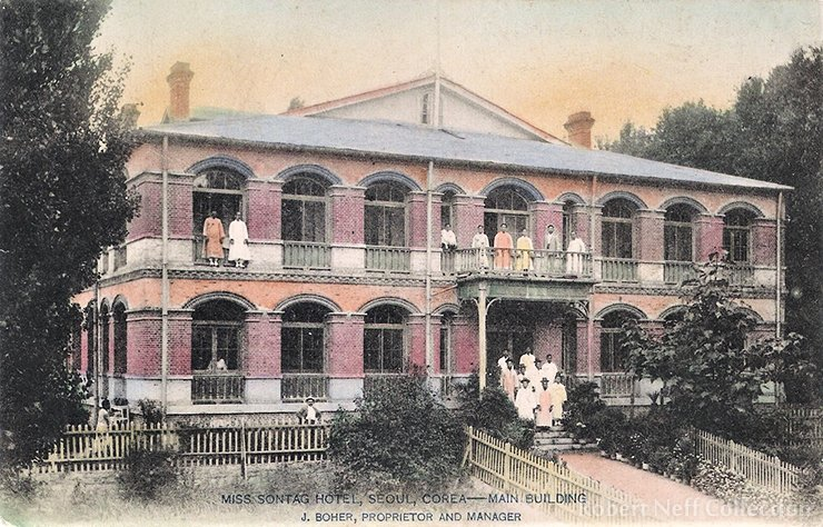 고종의 신임을 얻은 러시아 공사 베베르의 처형인 손탁(Antoinette Sontag) 여사는 고종으로부터 덕수궁 부근 황실 부지를 하사받아 1902년 2층 양옥의 '손탁호텔'을 지었다.9 손탁호텔 1층에 만들어진 커피하우스는 우리나라 최초의 호텔식 다방으로 기록되며, 귀빈을 대접하고 선택된 사람들만 커피를 마실 수 있었다.9