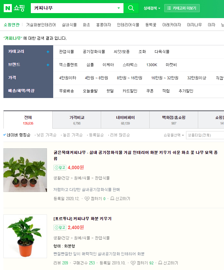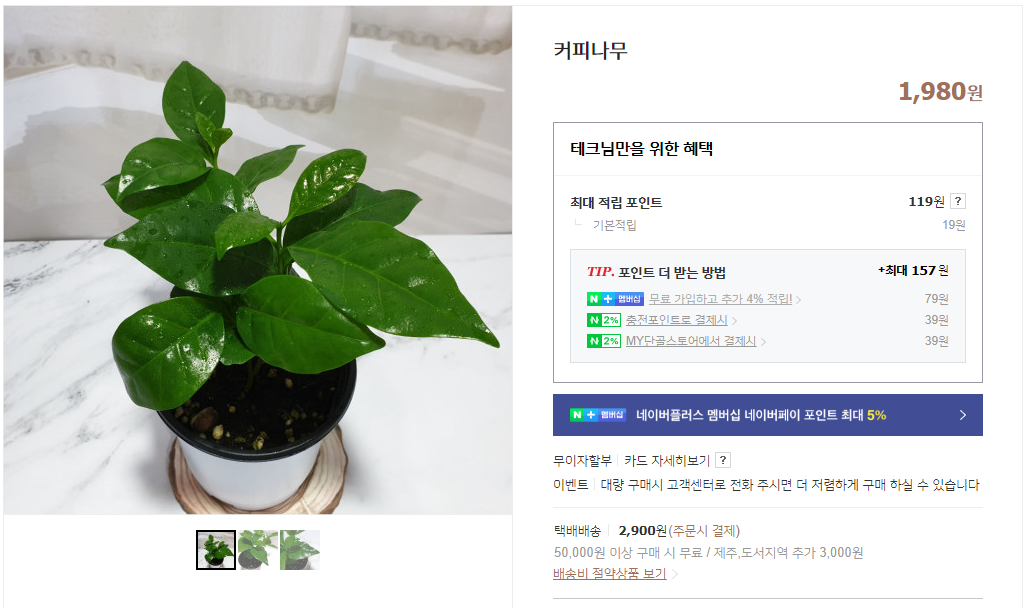 네이버 쇼핑에서 '커피나무' 검색하여 보시면 모종에서부터 제법 큰 아이들도 판매하는 것을 확인하실 수 있을 거예요.