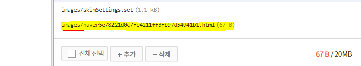 3번 항목을 잘 보시면 도메인 주소 다음에 경로부분 없이 바로 파일명이 명시되어 있습니다. 하지만 티스토리 스킨편집에서 파일 업로드 한 후를 보면