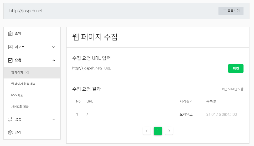 위 화면에서 등록된 사이트 주소를 클릭하면 아래와 같은 화면이 나옵니다.