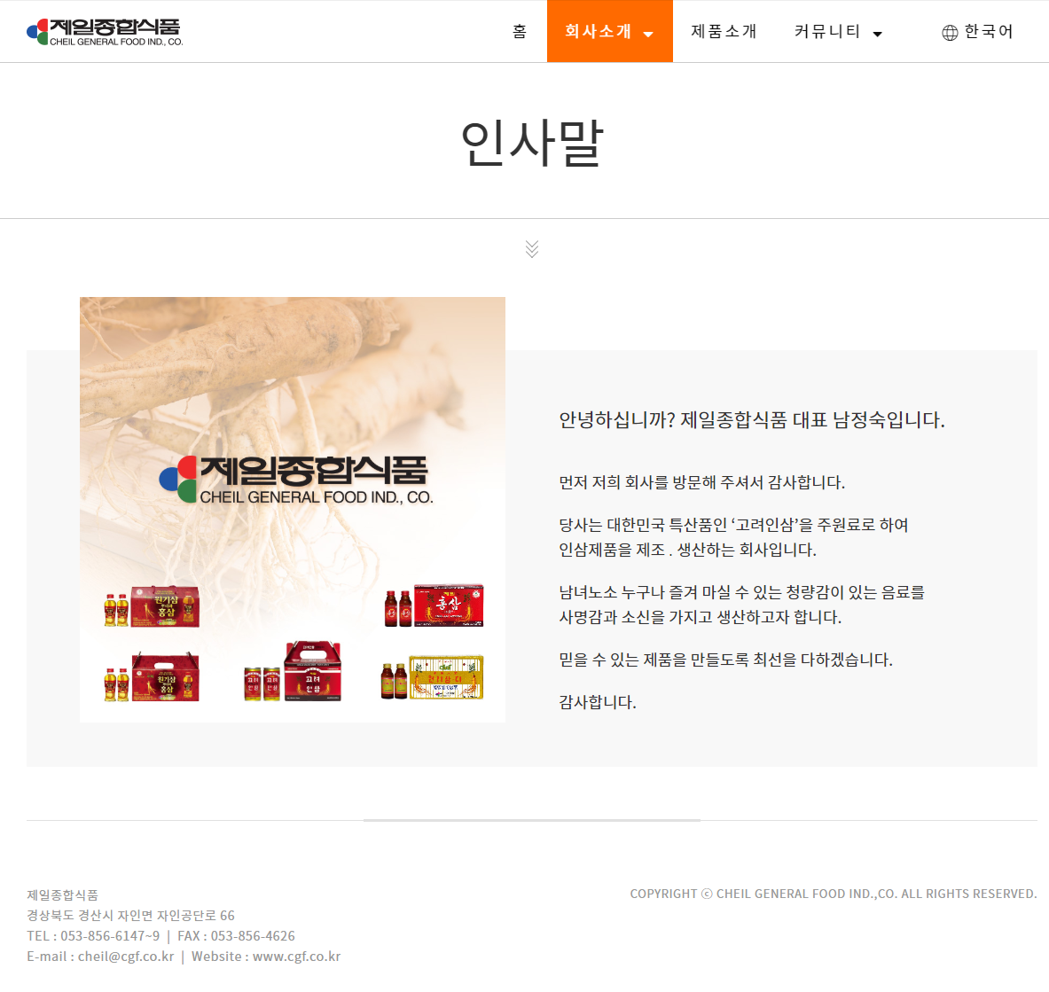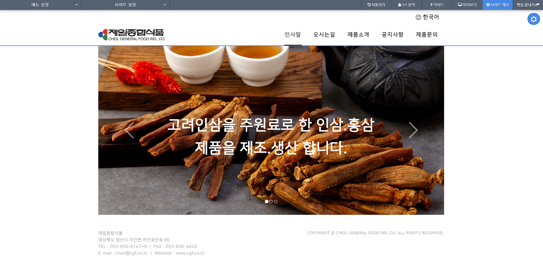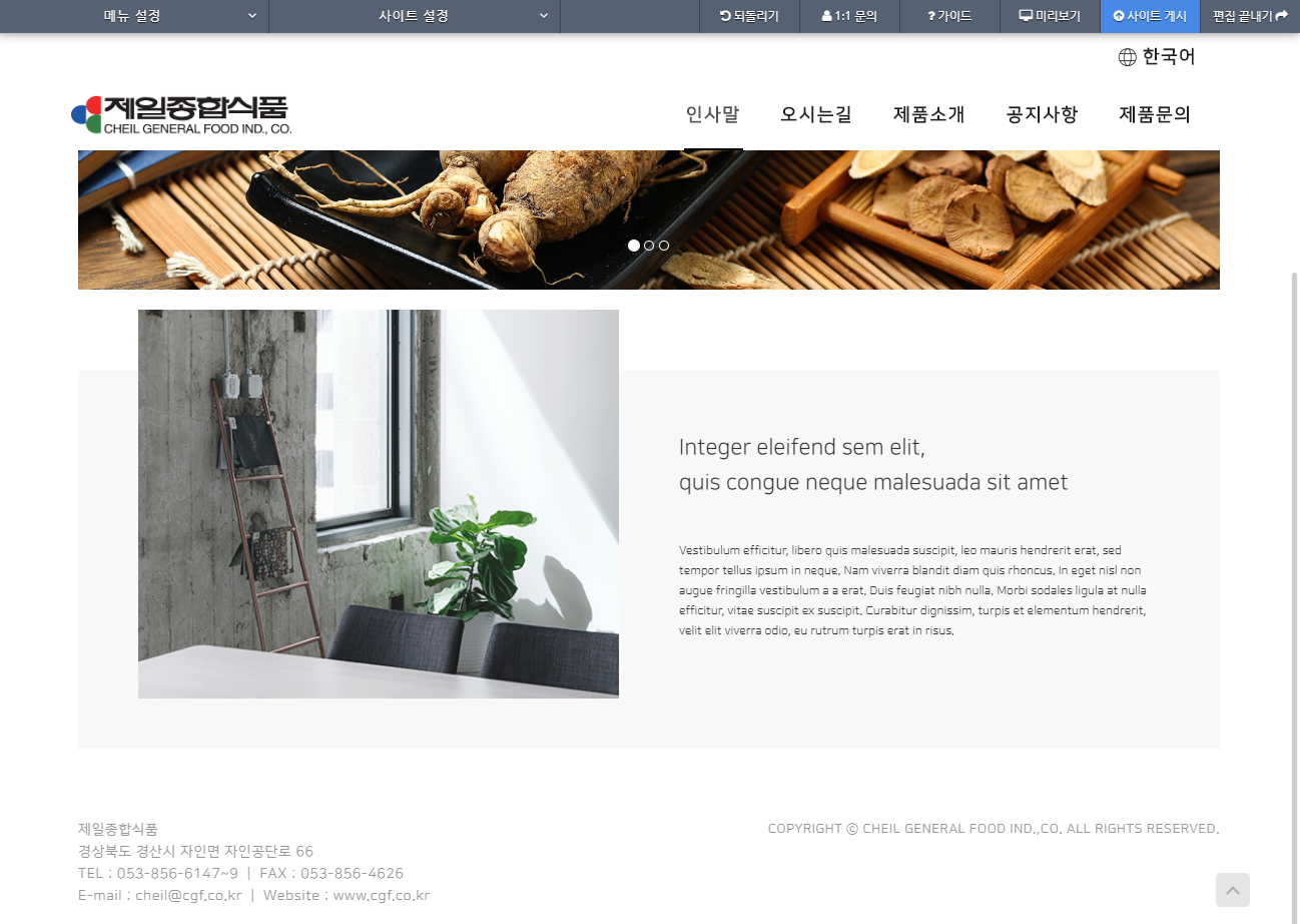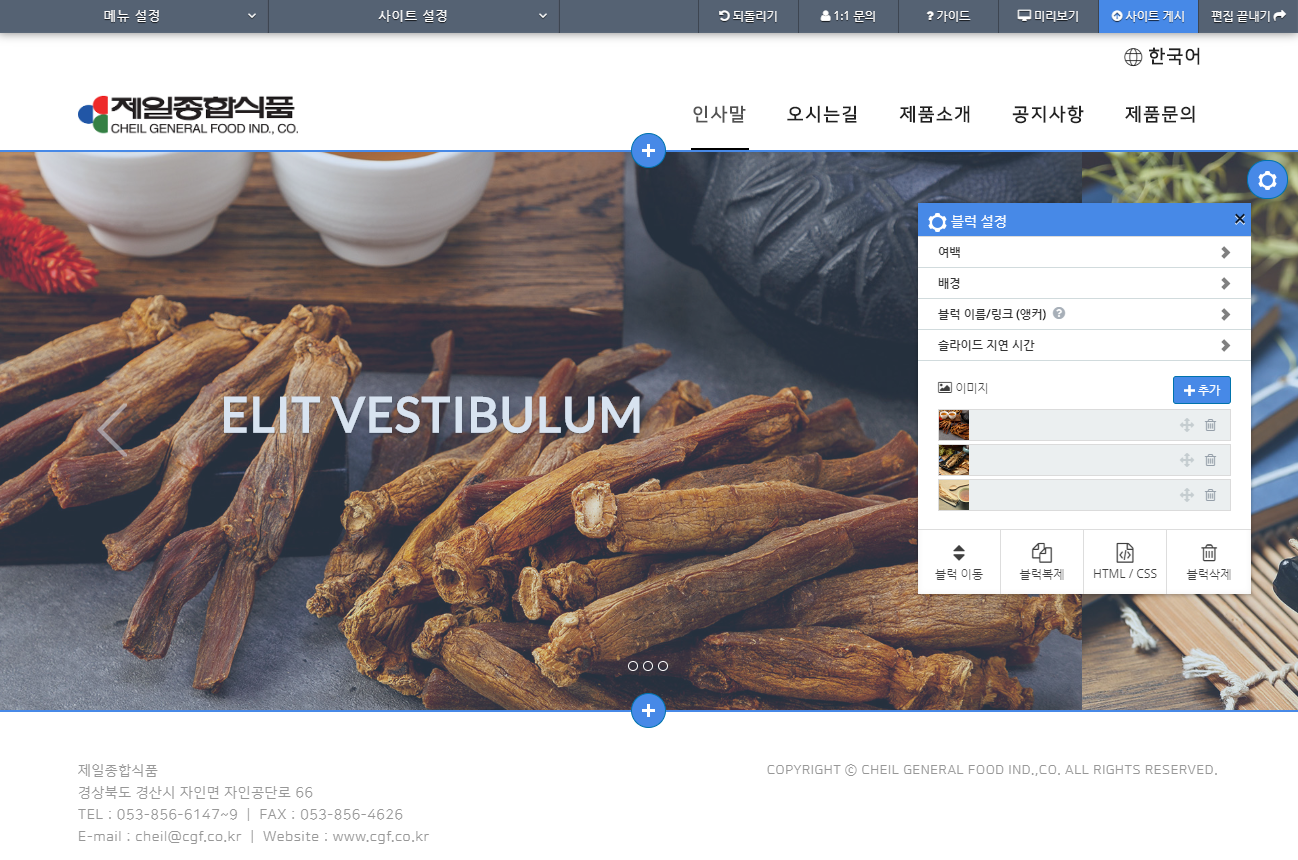 - 업체 제품과 관련된 이미지인 인삼과 업체 생산제품을 적절히 조합한 타이틀 이미지를 추가합니다.