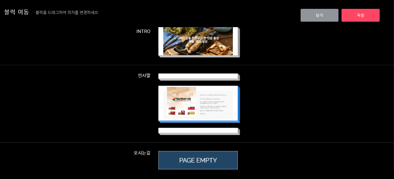 위와 같이 인사말 넣을 블럭이 추가 되었습니다.