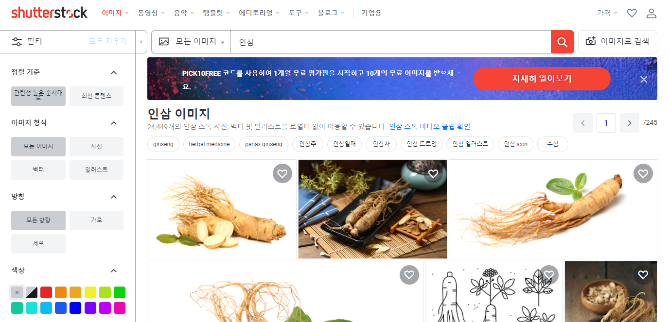 ![]() '인삼'으로 검색하니 많은 이미지 소스가 보입니다. |