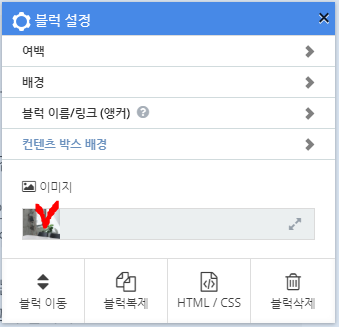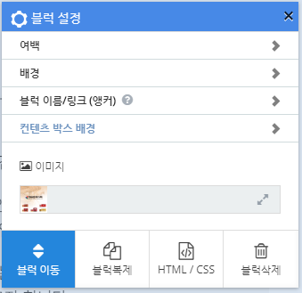 어떤 블럭이든 상관없이 블럭설정창을 열면 설정창 아래에 블럭이동 기능버튼이 있습니다.