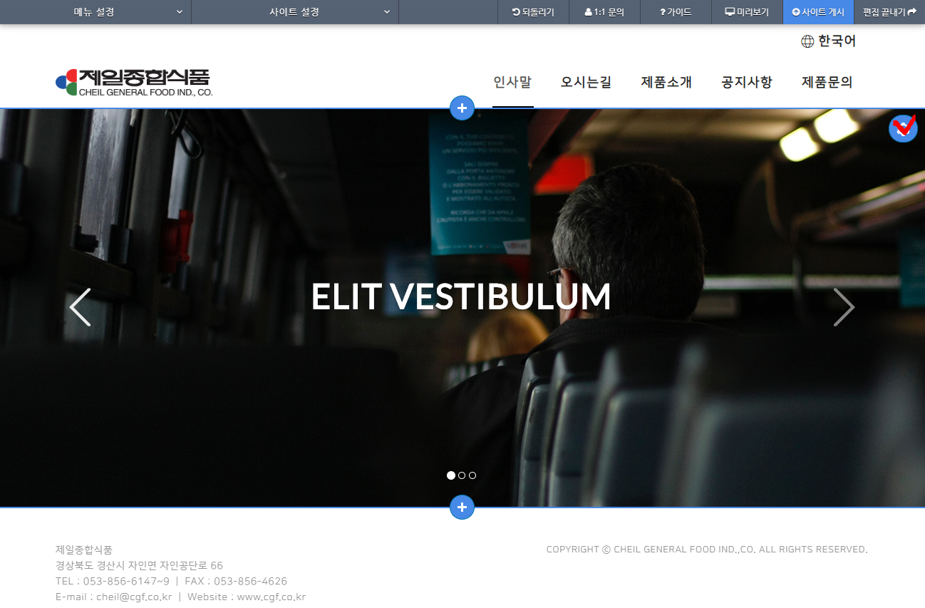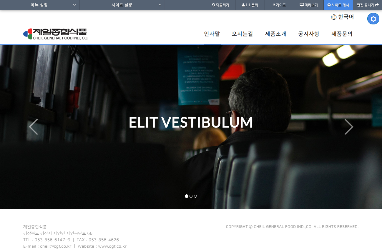 - '사이트편집' 상태에서 사이트메뉴인 '인사말'을 클릭하면 인사말 페이지가 열립니다.