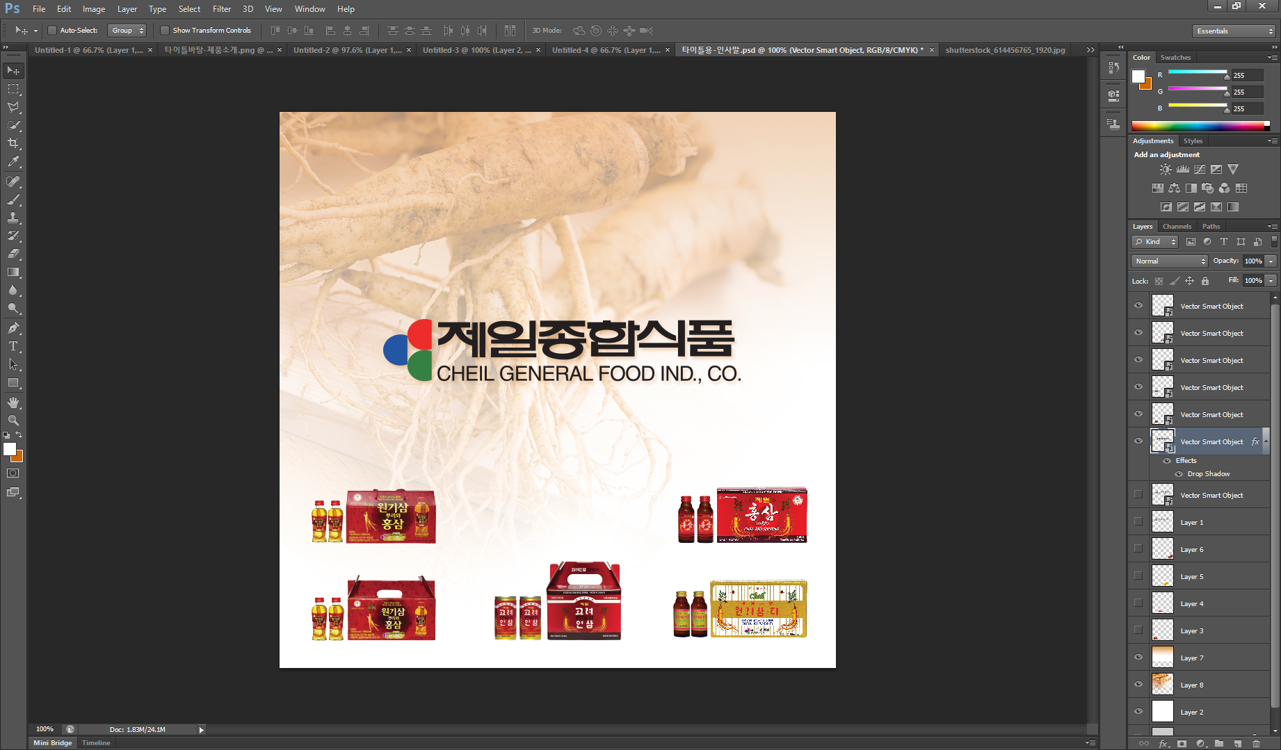 슬라이드 이미지에 인삼사진이 크게 올라 가 있으므로 중복되지 않도록 다른 이미지를 이용해서 적당히 편집해 보겠습니다.