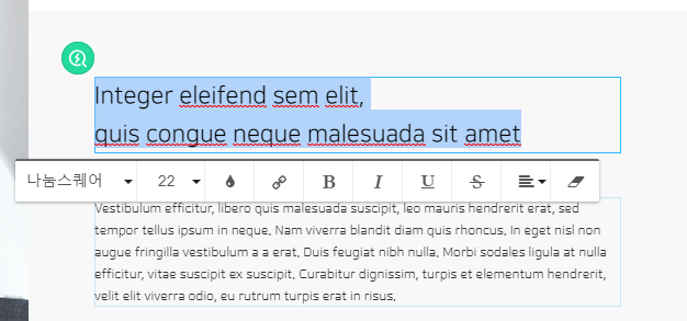 폰트 서식 변경은 입력한 글자를 드래그하면 뜨는 창에서 수정 가능합니다.