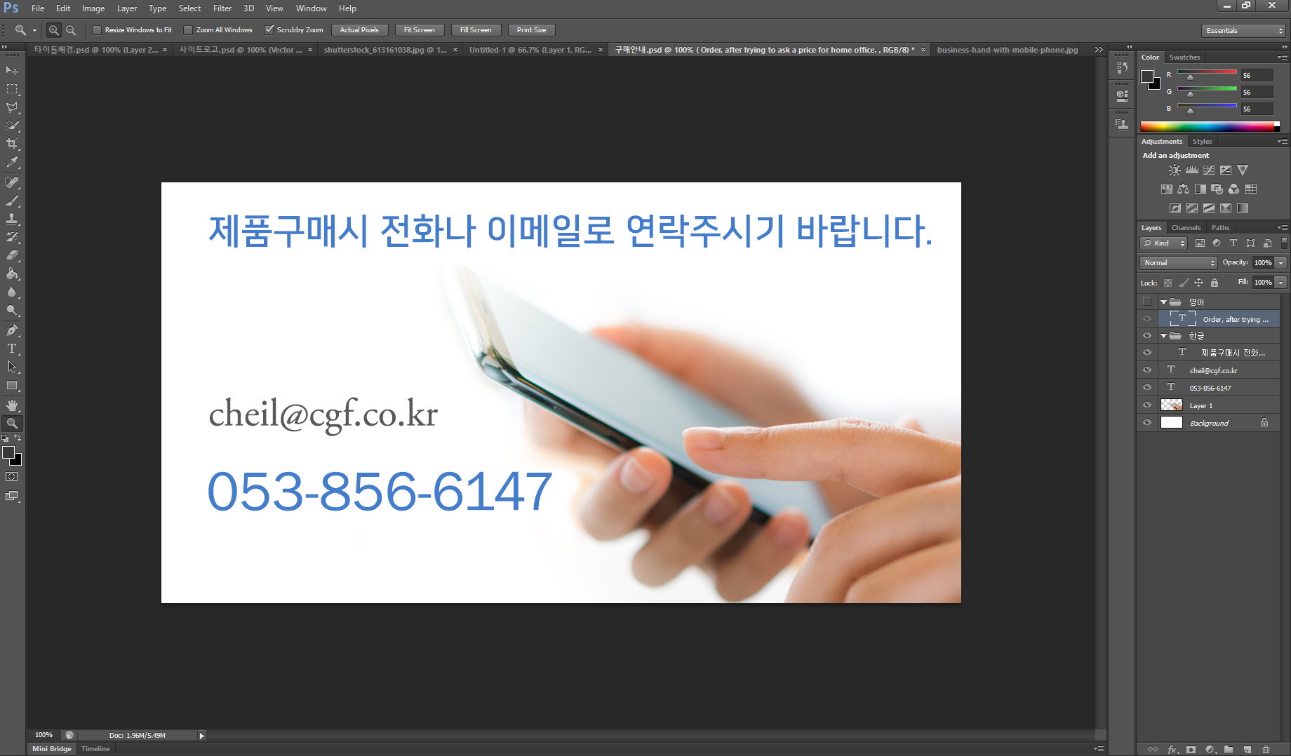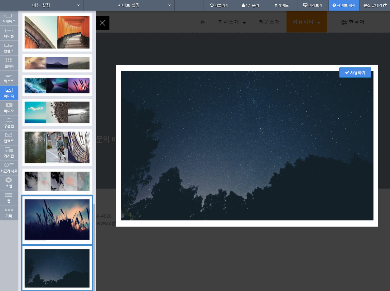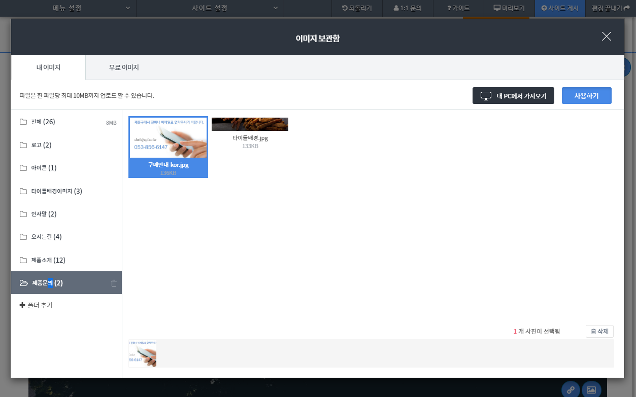 제품문의 페이지에는 간단하게 전화번호와 이메일만 나오면 되므로 페이지 자체를 이미지로 만들어 올리겠습니다.