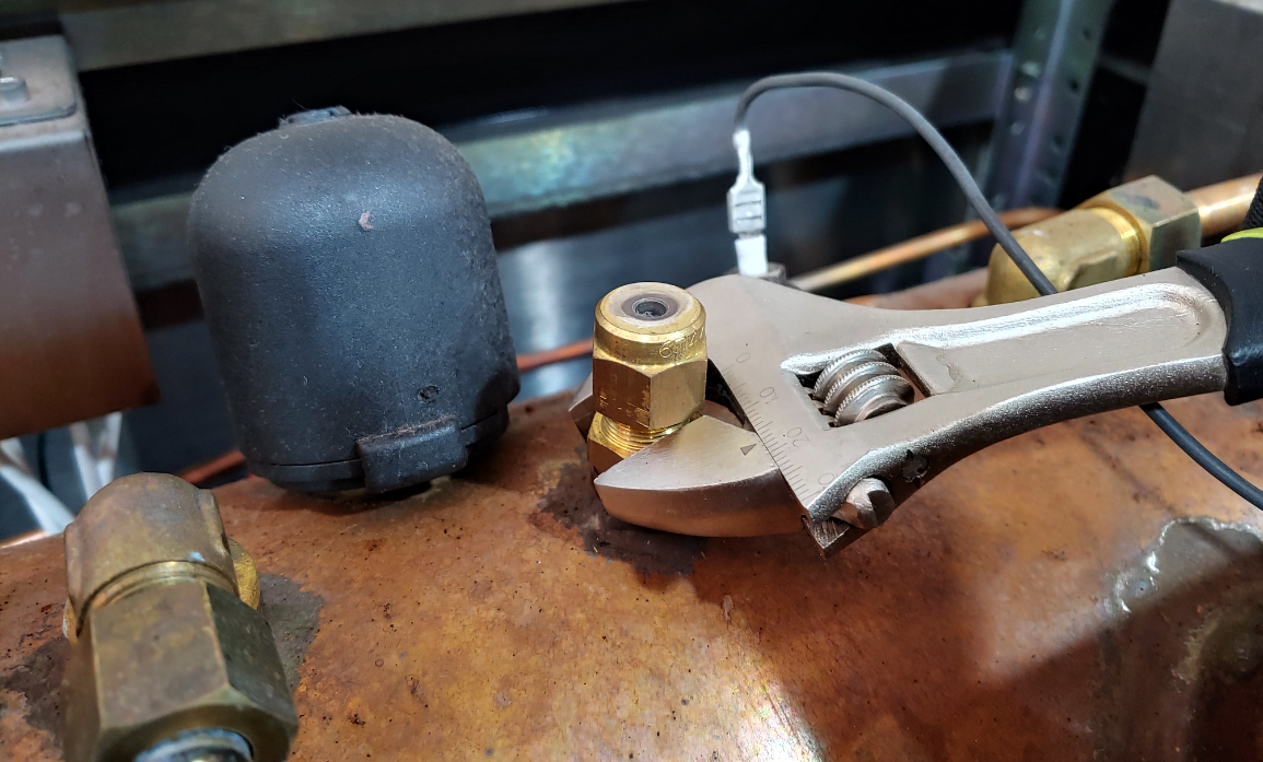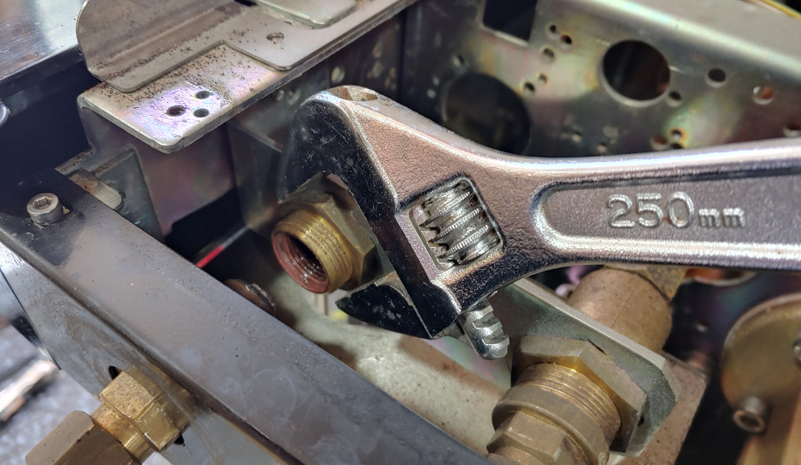 조립할 때도 보일러 쪽 결합부는 가능하면 두 개의 공구를 이용하는 편이 수월하고 안전합니다. 제법 힘을 줘서 조여야 하므로 한 개의 공구만 사용할 경우 보일러가 찌그러질 수 있습니다. 찌그러진 부분을 펴기 위해 반대편으로 힘을 주다 보면 찌그러진 부분이 펴지면서 찢어지거나 사용 중 터질 위험도 있으니 주의해야 됩니다.