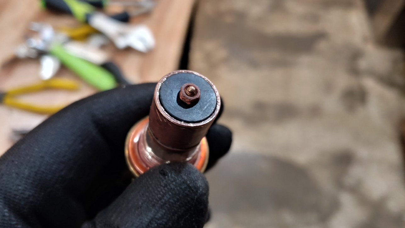 분리해낸 에어밸브입니다. 구리 재질의 개스킷(Copper Gasket)이 있는데 분실되지 않도록 주의하세요.