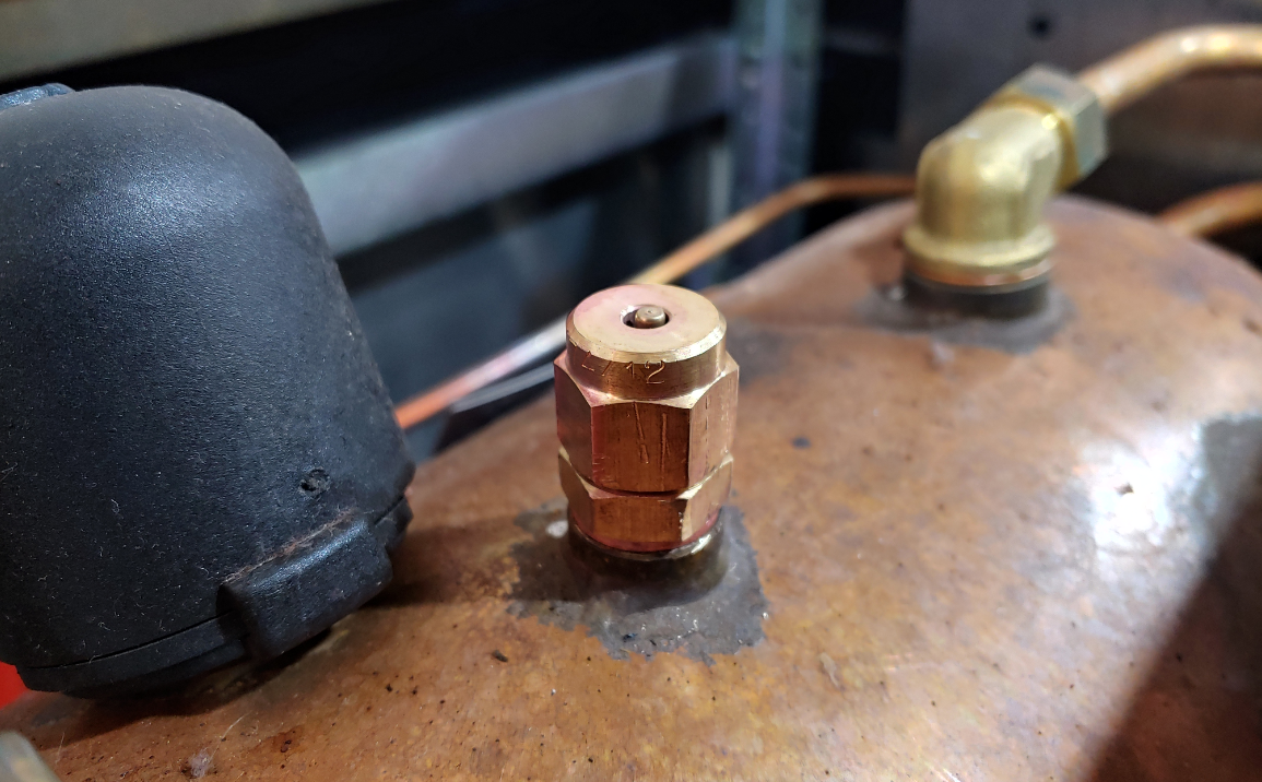 보일러 안의 공기를 빼기도 하고 넣어 주기도 하는 역할을 하는 에어밸브입니다. 몇 번 분해한 흔적이 보이네요.