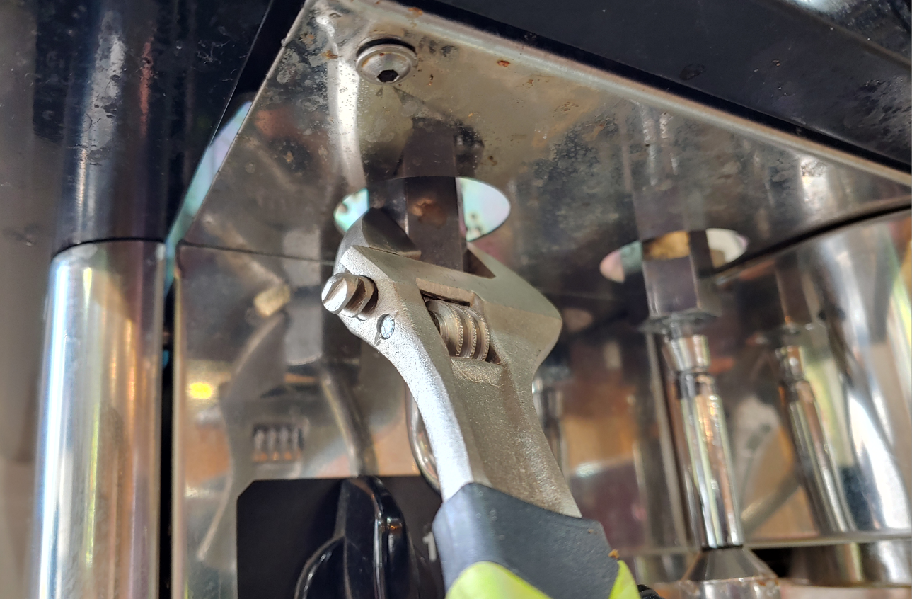 머신에는 두 개의 스팀밸브가 있으며 그중 왼쪽 스팀밸브 모습입니다. 저 부분을 분리해야 됩니다.