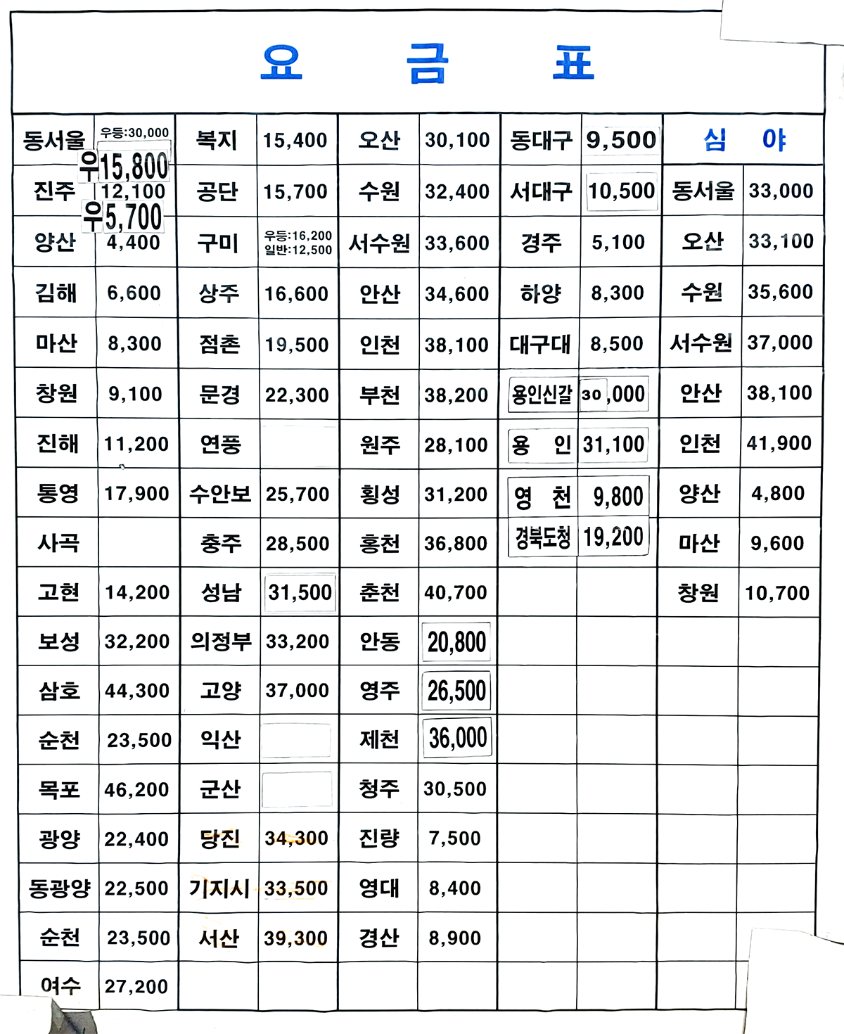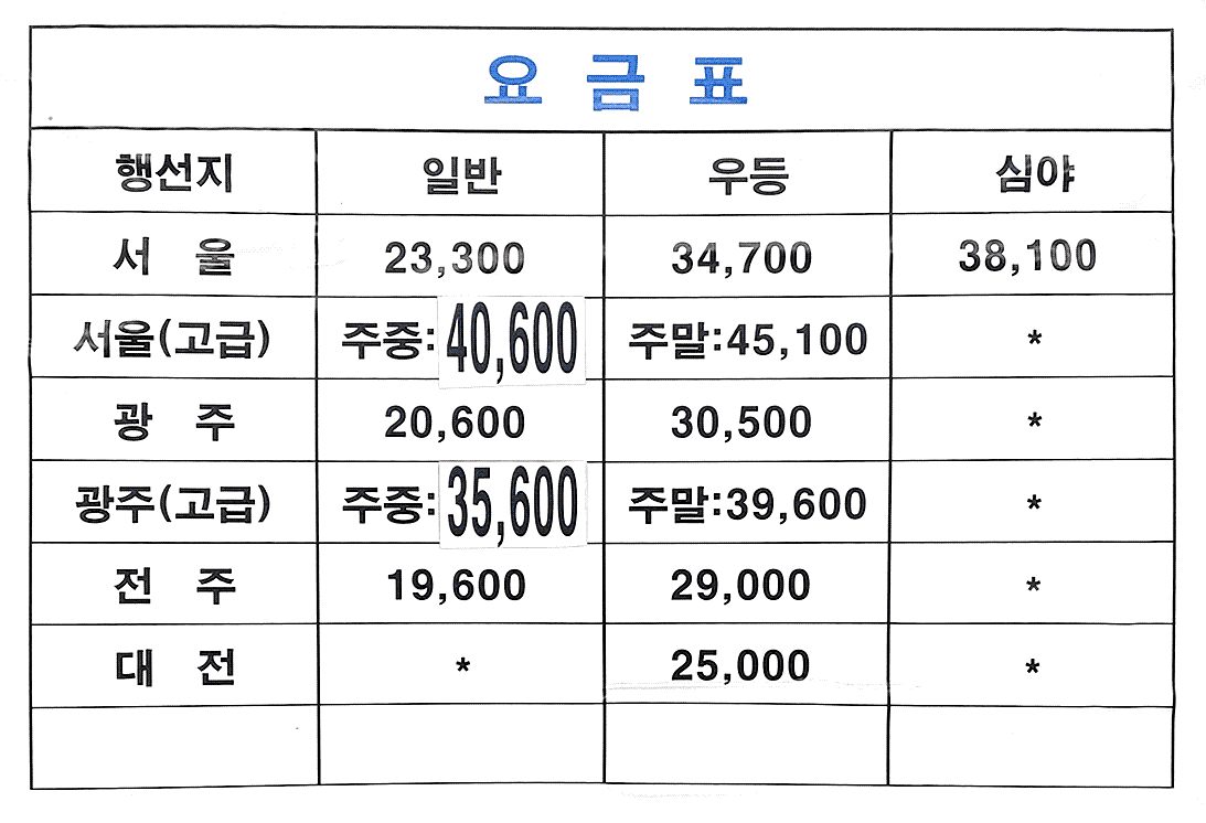 울산 시외버스터미널 시간 및 요금표 - 2021년 4월 1일 기준트