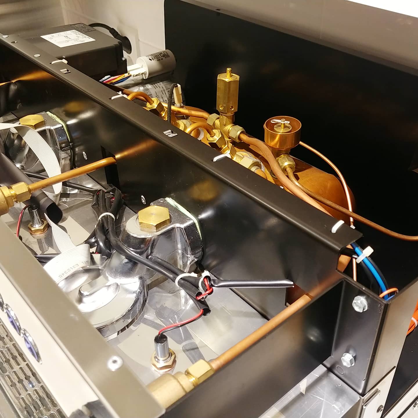 기기를 연결해서 작동시험을 해 보는데 커피 추출수 온도가 너무 높고 스팀압도 많이 올라가길레 보일러 압력을 조정하기 위해 열어 보았습니다.
