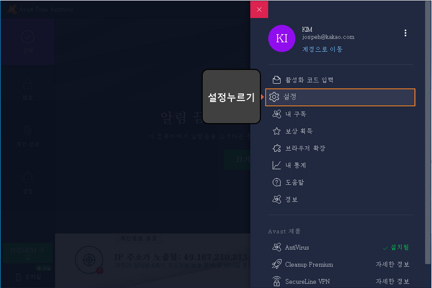 SETP. 1 - Avast 설정 들어가기